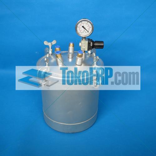 Tangki silinder volume 10 liter terbuat dari besi galvanis yang berfungsi utk menampung kelebihan resin dari moulding dan sebagai penampung vacuum dari pompa vacuum pada proses vacuum infusion.