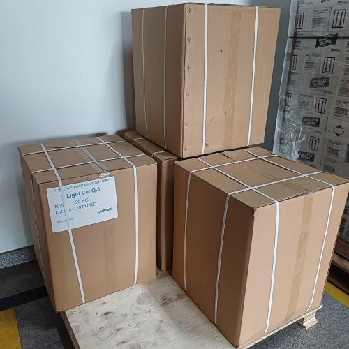 Light Cel Q6 adalah Hollow Glass Microsphere yang berupa butiran bola2 kaca sangat halus berwarna putih dengan diameter 40 -120 mikron dan sangat mudah bercampur dengan resin polyester, epoxy dan vinyl ester